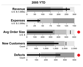 Gauges are like the junk food of dashboards. Just as junk food has little nutritional value but contains too many calories, gauges don’t contain enough data for the space they occupy on a dashboard – little “nutritional” value and too many pixels.