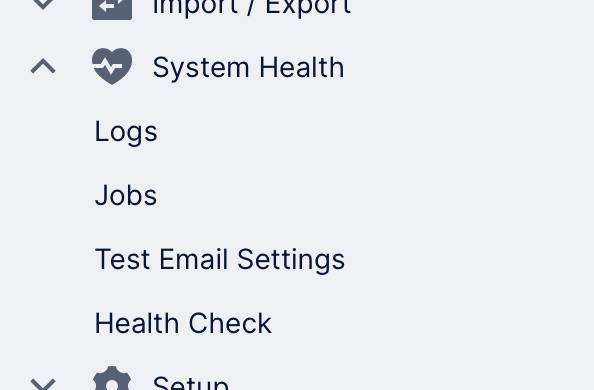 To check your email settings, expand the System Health options and click Test Email Settings.