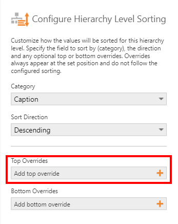 In the Configure Hierarchy Level Sorting dialog, there are two additional options which let you choose one or more hierarchy members to always appear on top or bottom in the sort order.