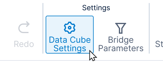 Click to configure the Data Cube Settings in the toolbar when editing an in-memory data cube that is checked out to you.