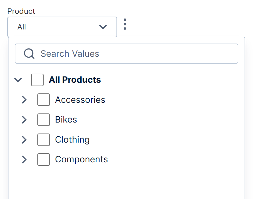The 'All' Member Caption can be set to customize the text identifying the top node of the hierarchy. If this value is not set, it will display the value located in the localization file for the current language.