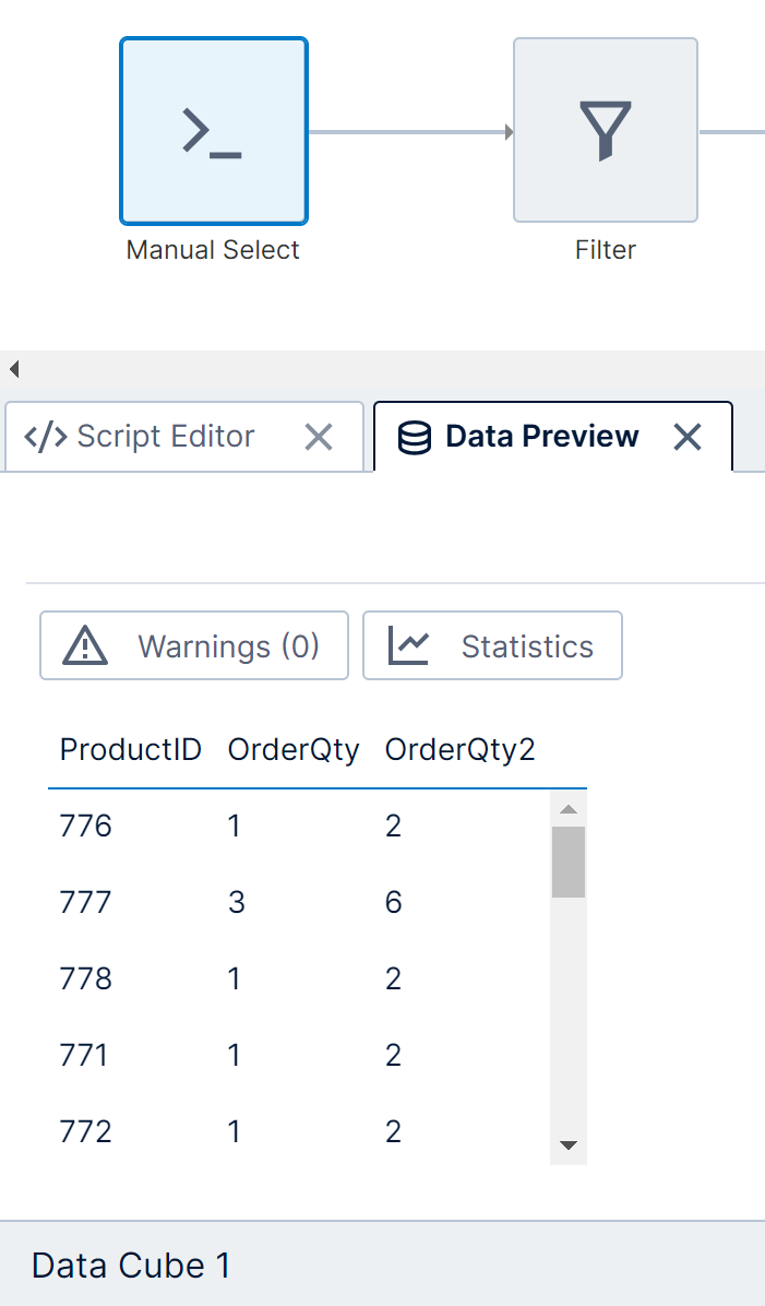 Otherwise, you can create a data cube from the main menu and choose Manual Select from the menu that appears, so that this transform will be added automatically when it opens.