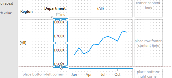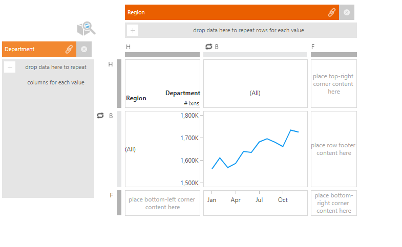 A header, footer, or corner can be a good place to add a legend to be used as a reference for your small multiple series. Row headers and row footers are displayed once per row, and column headers and column footers once per column.
