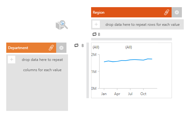 Drop data to repeat columns on the left to arrange visualizations horizontally, or rows on the top to arrange them vertically.
