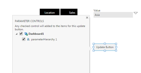The parameter update button lets users decide when changes in filters should be applied to the connected visualizations. This is useful when you want to first set up multiple filters all at once before the corresponding data is loaded.