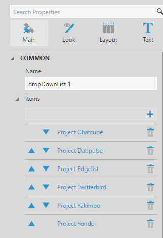 - Under Animation & Interaction (previously in the Main tab), set the Value to the name of the Project as it is in the database. Set the Caption property to the same for this example, to display the same name.
