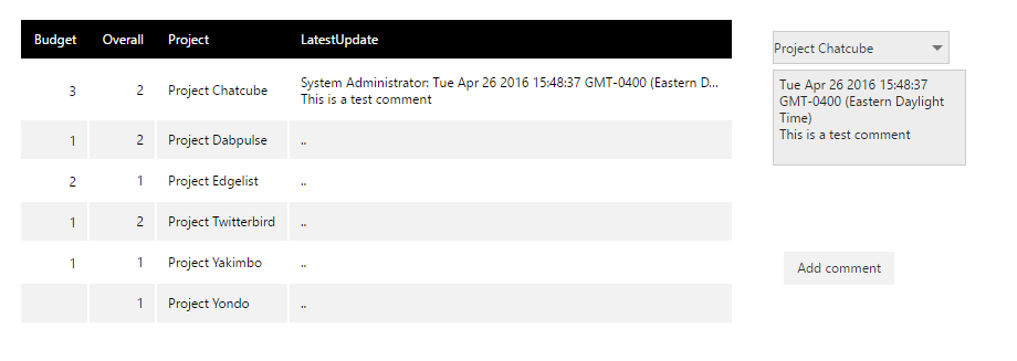 Add a comment in the textbox and click on the button. The comment is added to the table: