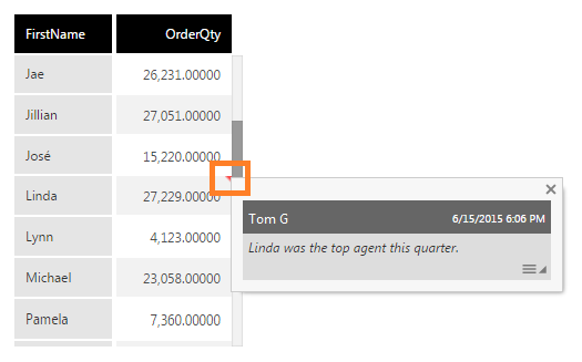 Instead of viewing notes by hovering over the red triangle like in the image above, we will allow users to view or add live comments in another column of the table visualization and store them in our own database.