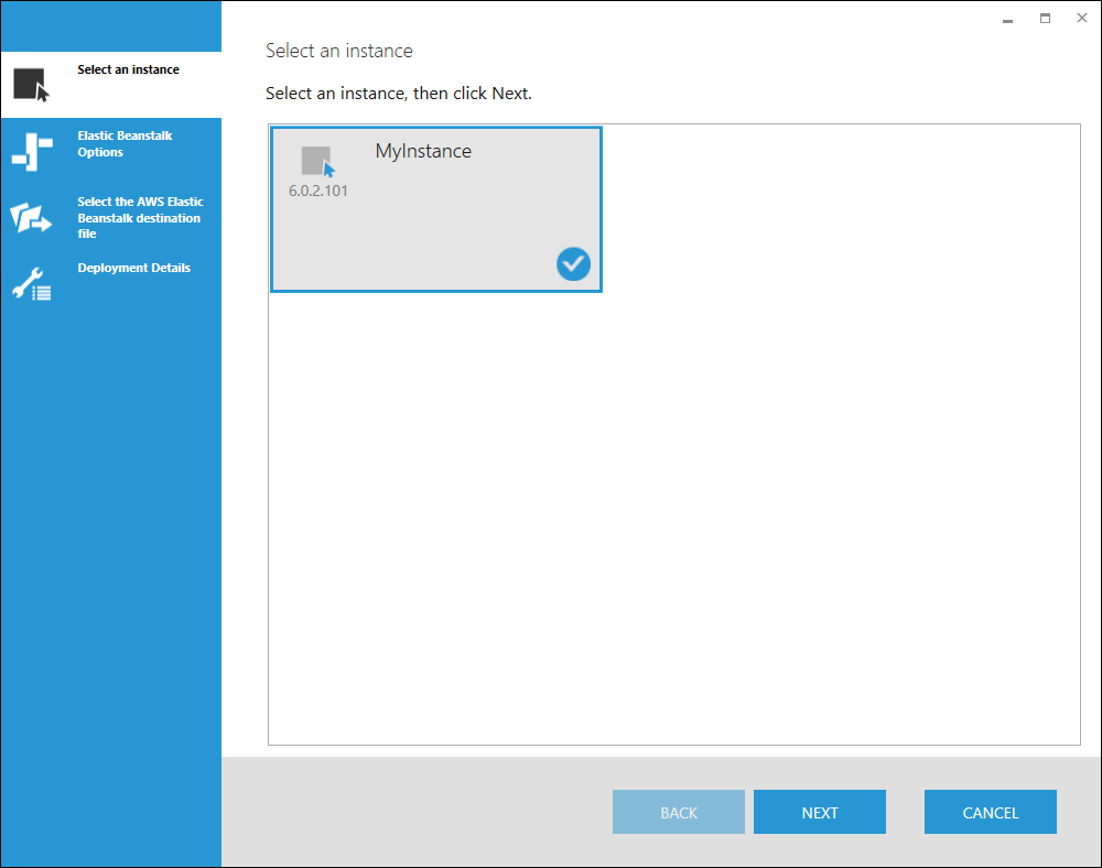 Select the instance that you want to deploy on AWS Elastic Beanstalk.