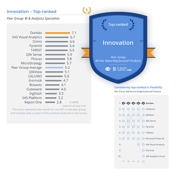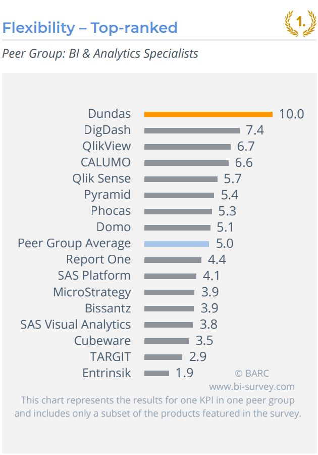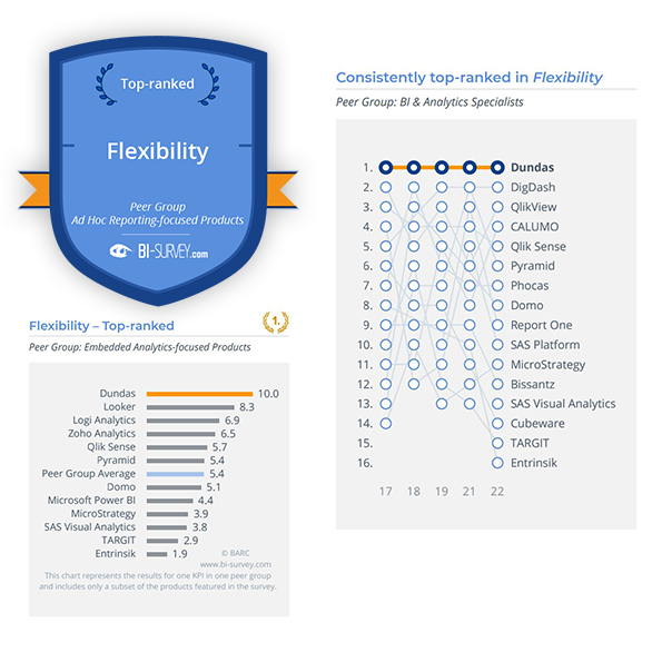Enterprises require solutions that can adapt their analytics to their quickly changing business needs and actively seek out solutions that grant high flexibility. A remarkable 75 percent of respondents cited flexibility as a decisive factor that tipped the scales in favor choosing to buy Dundas BI.