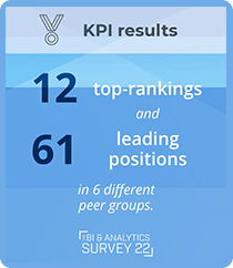 The BI & Analytics Survey 22 examines user feedback on BI product selection and usage across 36 criteria (KPIs) including Business Benefits, Project Success, Business Value, Recommendation, Customer Satisfaction, Customer Experience, Innovation and Competitiveness.