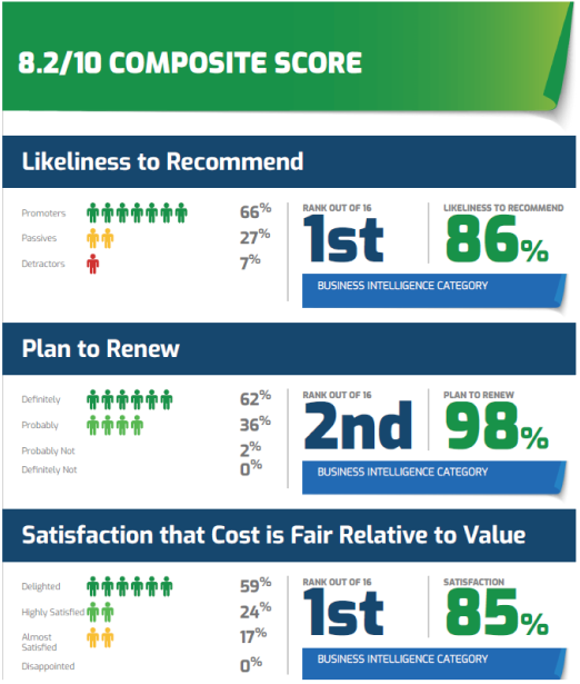 Dundas BI received top-ranking satisfaction scores in multiple product feature categories including:
