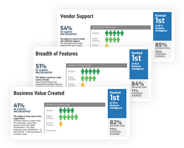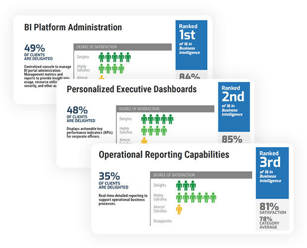 Dundas BI received top-ranking satisfaction scores in multiple vendor capability categories including: