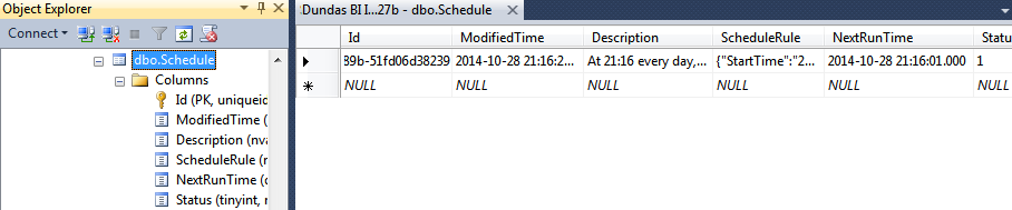 If you have access to the Dundas BI server and its application database, locate the database (e.g., Dundas BI Instance1 in SQL Server Management Studio or pgAdmin).