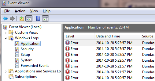 If Dundas BI is installed on a Windows computer, log onto it, then search for and launch the Event Viewer from the start menu or taskbar.