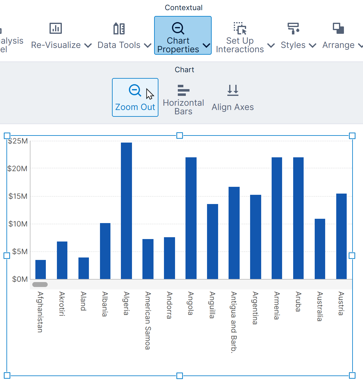When zoomed in, scrollbars appear to allow you view the rest of the data at the same level of detail.